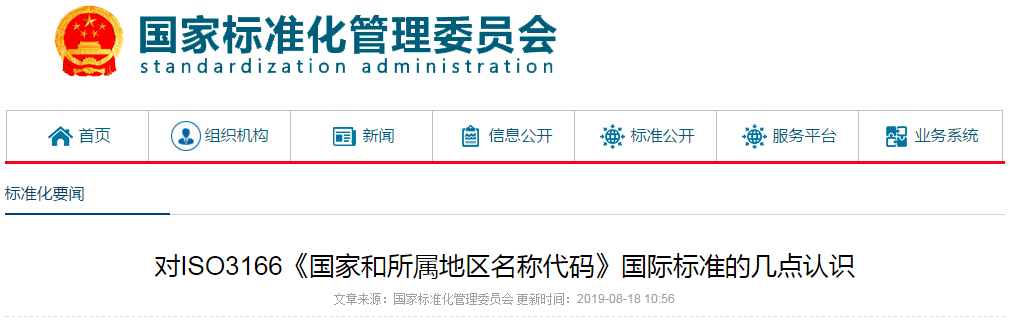 近期,网上流传《为什么外国公司集体辱华?原因找到了!》的文章,将一些外国品牌在其官网上把台湾或香港列为独立地区,归因于使用了ISO3166《国家和所属地区名称代码》国际标准,引起了热议,说明了大家对标准越来越关注。作为长期从事代码标准化的科研人员,针对该标准我来谈几点理解和认识。